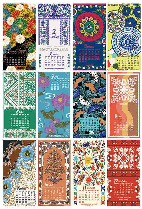 世界の花や草木をモチーフとする民芸や伝統工芸を題材にしたカレンダー。カラフルなデザインの花々が、インテリアとしてもお部屋で抜群の存在感を放つ。めくるごとに世界を旅しながら、図鑑のように楽しめる。ネパールのハンドメイドの手漉き紙を使用した、温もりたっぷりのカレンダー。