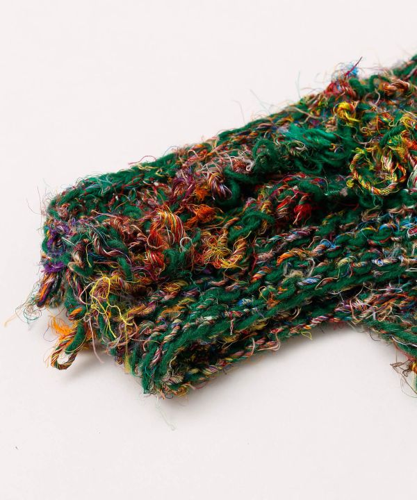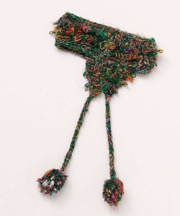 ネパールの手編みのミミツキHB。インド、ネパールの旅先で出会う花売りとフラワーマーケットをイメージ。ミミツキなので、そのまま垂らしても、顎の下で結んでも楽しめるデザイン。