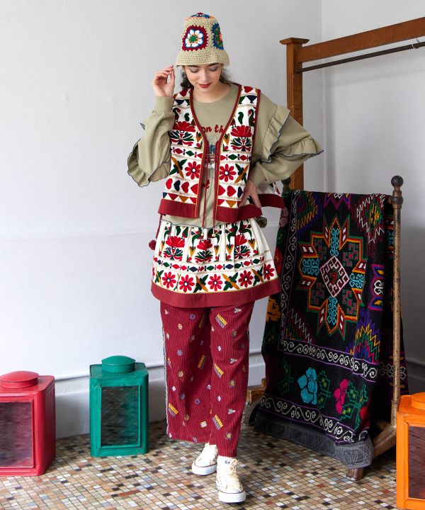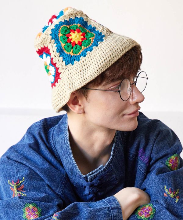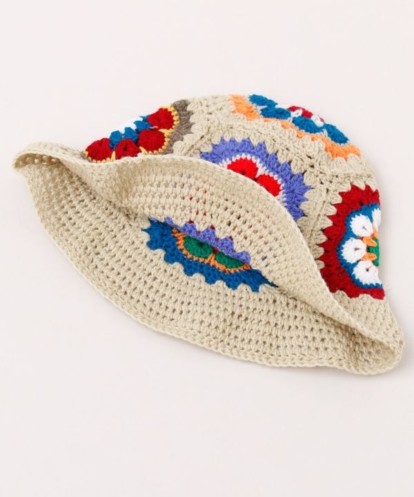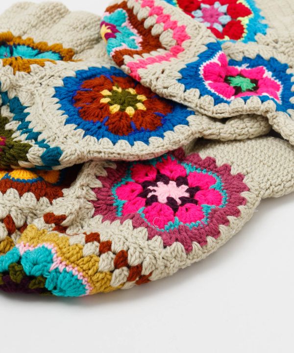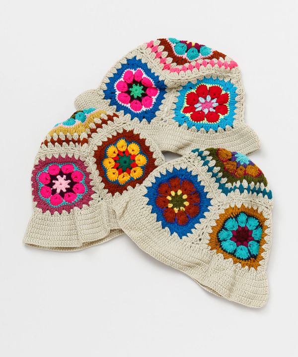 ネパールの手編みのHAT。インド、ネパールの旅先で出会う花売りとフラワーマーケットをイメージ。圧迫感無く着用できる手作り感満載の温かみのあるアイテム。カラフルなデザインが華やかさを演出してくれる。