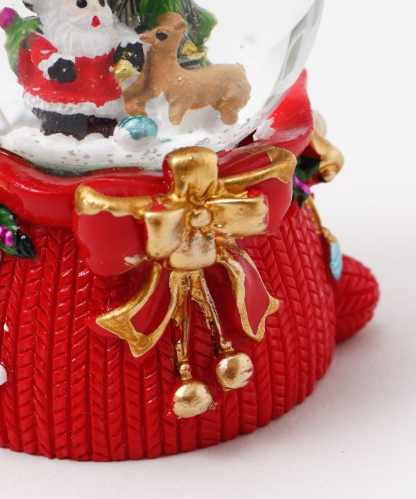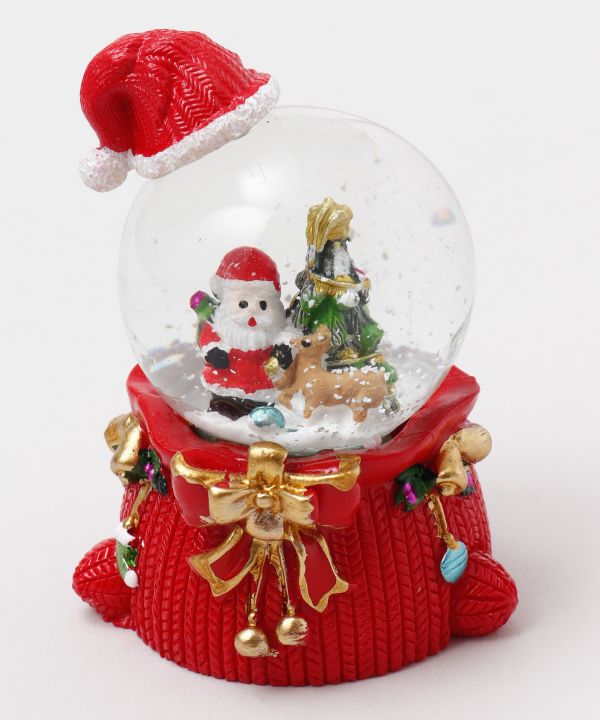 カラフルで温かみのあるにぎやかなクリスマスをイメージしたスノードーム。サンタの帽子になっているデザインが可愛らしい一点。デスクや窓際などのちょっとしたスペースにも置きやすい小さめサイズで、プレゼントにもおすすめです。