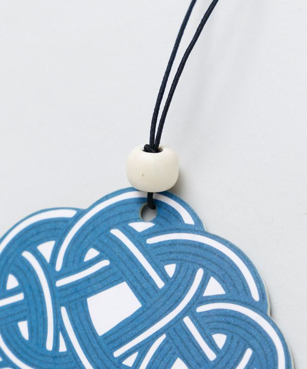 日本の伝統的な水引をモチーフにしたエアーフレッシュナー。僧侶の装飾としても使われる「修多羅(しゅたら)」結びの一部である袈裟(けさ)結びをデザインに取り入れ、上品で縁起の良い形に仕上げました。お部屋やクローゼット、車内に吊るすだけで気軽に香りを楽しめます。