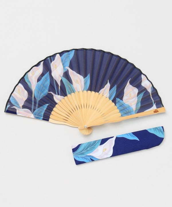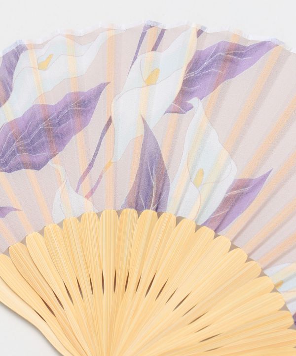 水芭蕉(みずばしょう)の花を上品に描いた、大人の雰囲気漂う扇子。持ち運びに便利な専用袋付きで、親骨にはカヤオリジナル刻印が入っています。日常使いから贈りものまで幅広くおすすめのアイテムです。