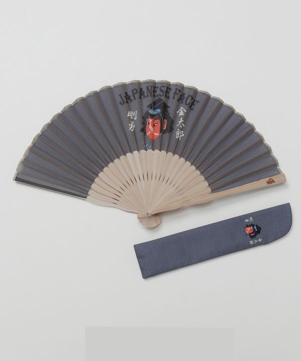 ユニークな和の顔をモチーフにしたプリントが目を引く和面扇子。持ち運びに便利な専用袋付きで、親骨にはカヤオリジナル刻印が入っています。遊び心あふれるデザインは贈りものにもおすすめです。