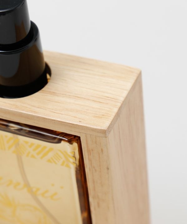 ハワイのリゾートホテルを思わせる上質な香りのルームスプレー。ウッドとガラスが組み合わさった高級感のあるデザインで、インテリアとしても映えるアイテム。ひと吹きでお部屋に心地よい癒しの香りが広がります。