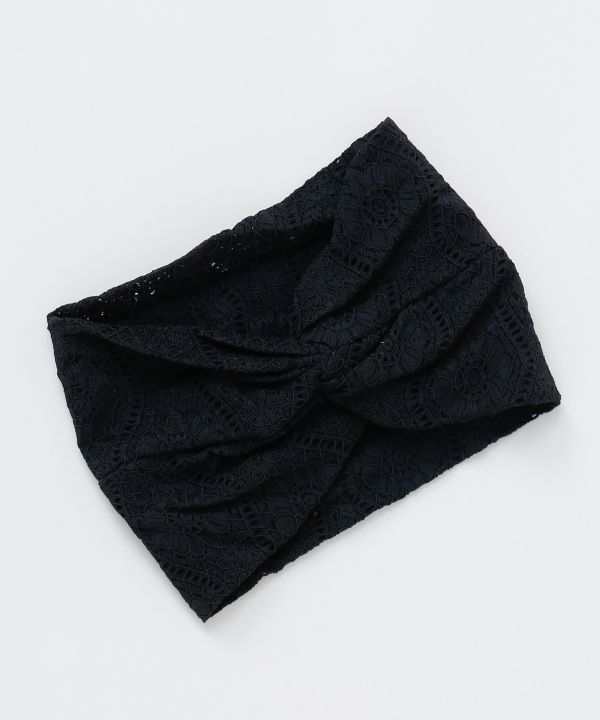 広め幅のヘアバンド。レースが素敵なデザイン。コーデのワンポイントにおすすめ。