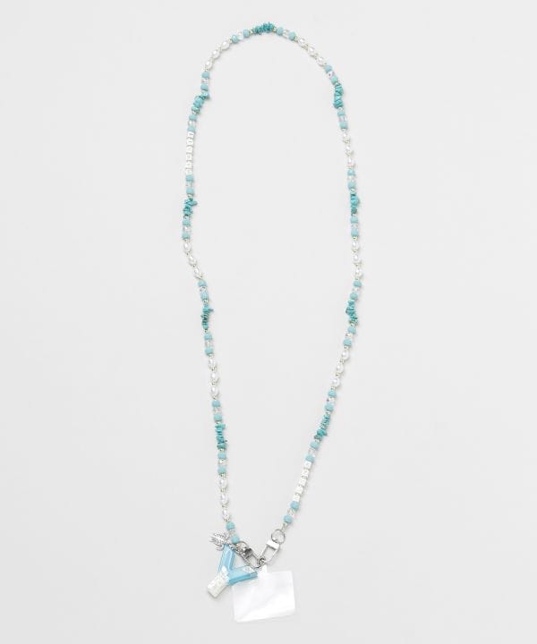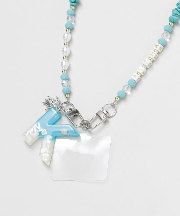 ハワイの海を思わせるビーズが連なるイニシャルスマホストラップ。肩掛けできるロングタイプで、スマホを落とさず安心して使えます。爽やかな色合いがリゾート気分を演出し、大切な人とのお揃いにもおすすめです。
