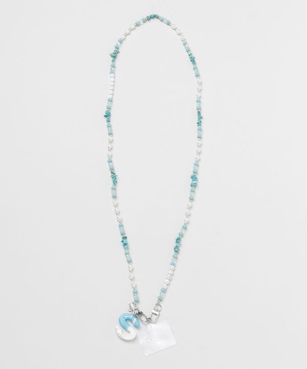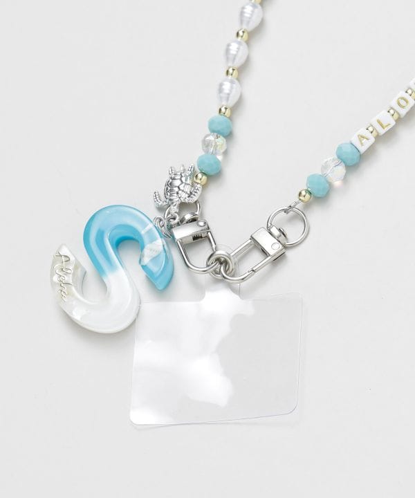 ハワイの海を思わせるビーズが連なるイニシャルスマホストラップ。肩掛けできるロングタイプで、スマホを落とさず安心して使えます。爽やかな色合いがリゾート気分を演出し、大切な人とのお揃いにもおすすめです。