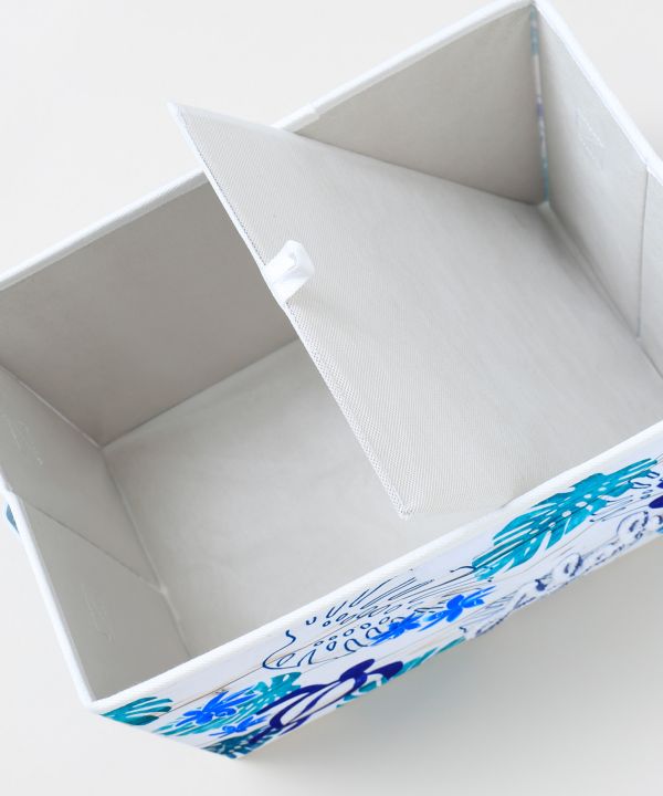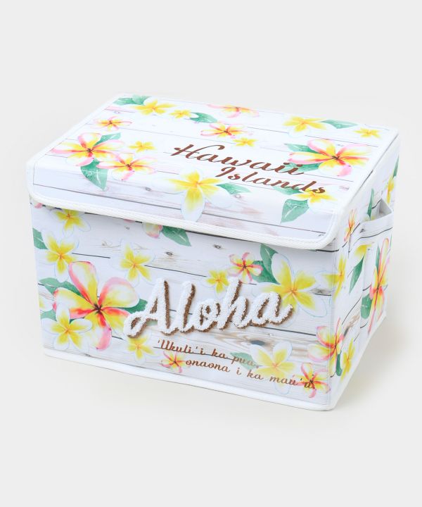 ハワイらしいプルメリア柄とホヌ柄がかわいい収納ボックス。使わないときはコンパクトに畳める便利な仕様です。リビングや子ども部屋などに置くだけで、明るくリゾート感のある空間を演出します。蓋つきタイプ。