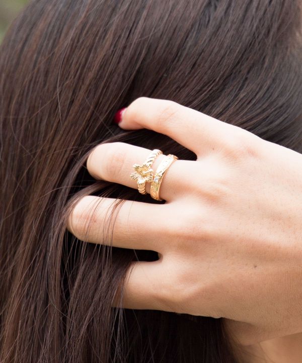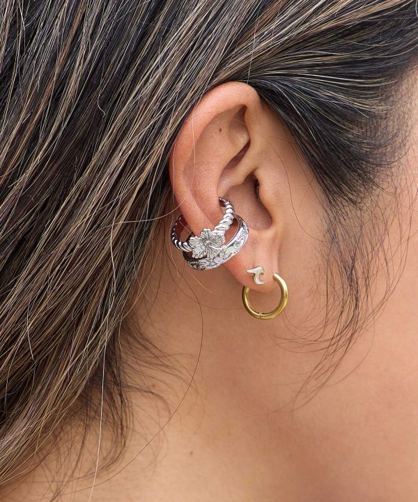 ハイビスカスモチーフの2WAYイヤーカフ。ハワイの文化でハイビスカスは、愛や美を象徴する花とされています。咲き誇るその姿が、女性らしさをいっそう引き立てます。