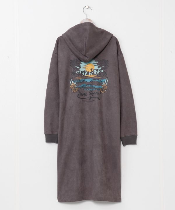 ノースショアのサンセットをイメージしたプリントが印象的なワンピース。カットスエード素材でさらっとした肌触りと程よい伸縮性があり、快適な着心地です。まだ肌寒い初春から活躍し、便利なポケット付き。