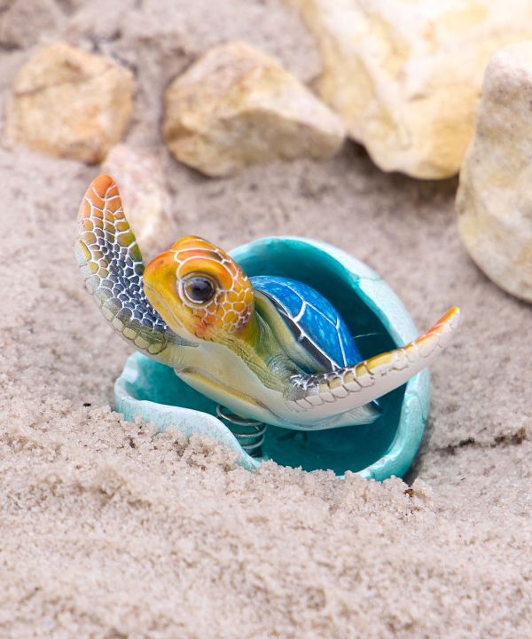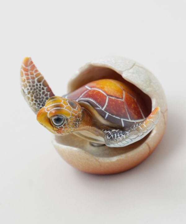 卵から顔をのぞかせるホヌが愛らしいフィギュア。柔らかな色合いのグラデーションが海の中の穏やかな時間を思わせます。インテリアのアクセントとしてはもちろん、玄関やデスク周りに置いて癒しの空間を演出するのにもおすすめです。