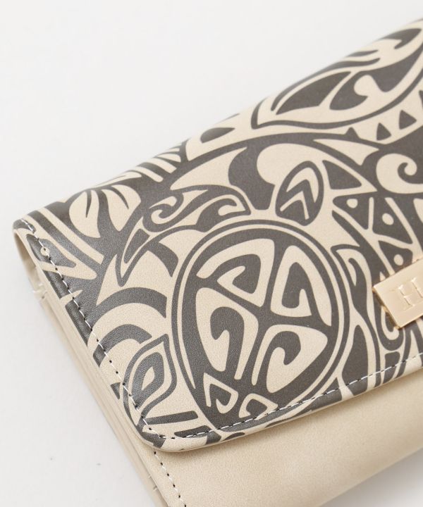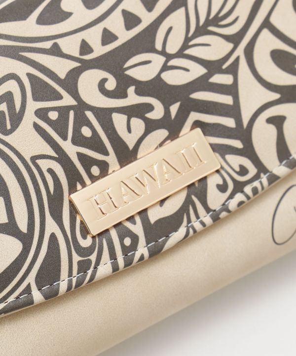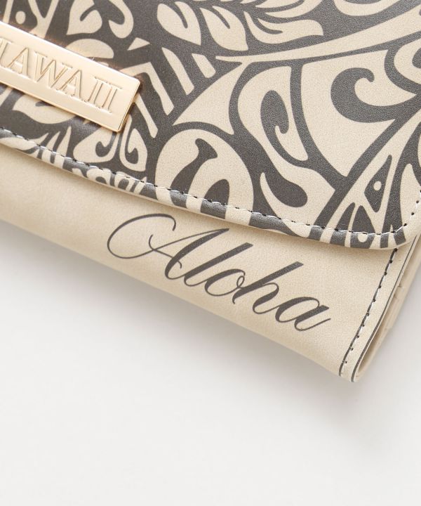 上品なハワイアントライバル柄が印象的な長財布。カードやお札、小銭をたっぷり収納できる実用的なデザイン。取り外し可能なコインポーチ付きの2WAY仕様で、シーンに合わせて使い分けが可能。ゴールドプレートが華やかさを添えます。