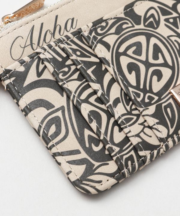 ハワイの伝統模様をモチーフにしたトライバル柄カードケース。コンパクトながら収納力があり、カードをすっきり整理できます。上品なデザインと落ち着いた色味で、大人のリゾートスタイルを演出するアイテム。