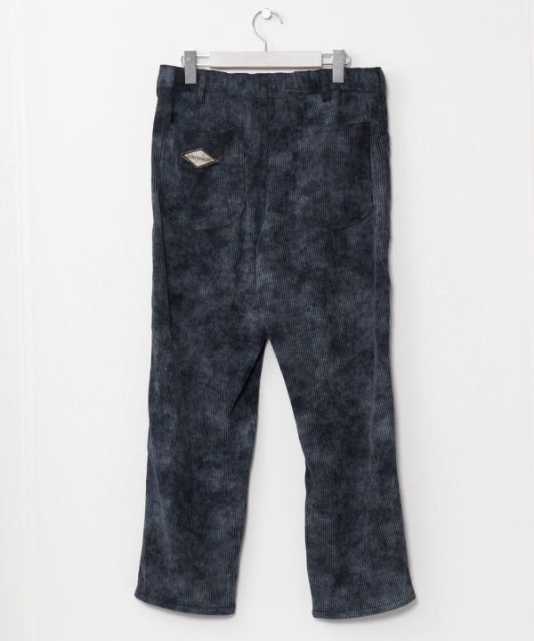 太うねコーデュロイ生地を使用したメンズパンツ。洗い加工風のプリントがヴィンテージ感を演出します。まだ肌寒い初春から着用できる程よい厚みで、ポケットに施したワッペンがさりげないポイントです。