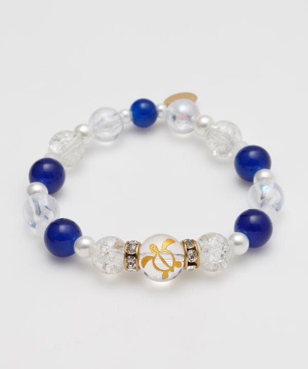 ハワイの海の輝きを閉じ込めたようなビーズをあしらったブレスレット。フラガール風のカラフルなデザインが手元を明るく彩ります。ハワイの文化でホヌ(ウミガメ)は大海の守り神とされ、旅のお守りにもおすすめです。