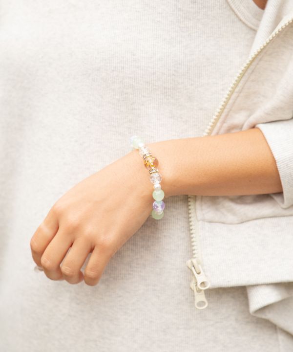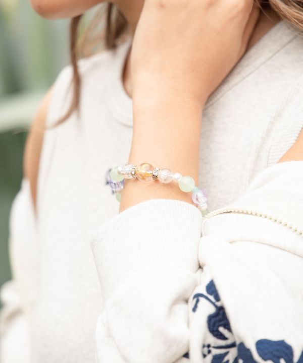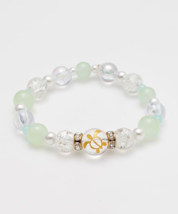 ハワイの海の輝きを閉じ込めたようなビーズをあしらったブレスレット。フラガール風のカラフルなデザインが手元を明るく彩ります。ハワイの文化でホヌ(ウミガメ)は大海の守り神とされ、旅のお守りにもおすすめです。