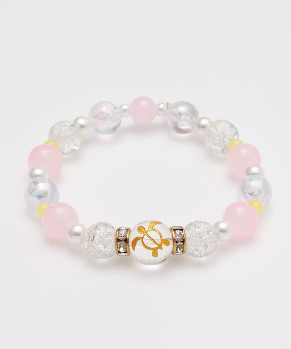 ハワイの海の輝きを閉じ込めたようなビーズをあしらったブレスレット。フラガール風のカラフルなデザインが手元を明るく彩ります。ハワイの文化でホヌ(ウミガメ)は大海の守り神とされ、旅のお守りにもおすすめです。