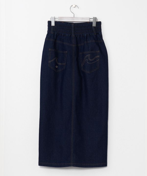 ストレッチデニム素材を使用したデニムタイトスカート。程よい柔らかさとフィット感で動きやすく、着心地の良い仕上がりです。穿くほどに身体に馴染み、自然な色落ちや風合いの変化も楽しめます。