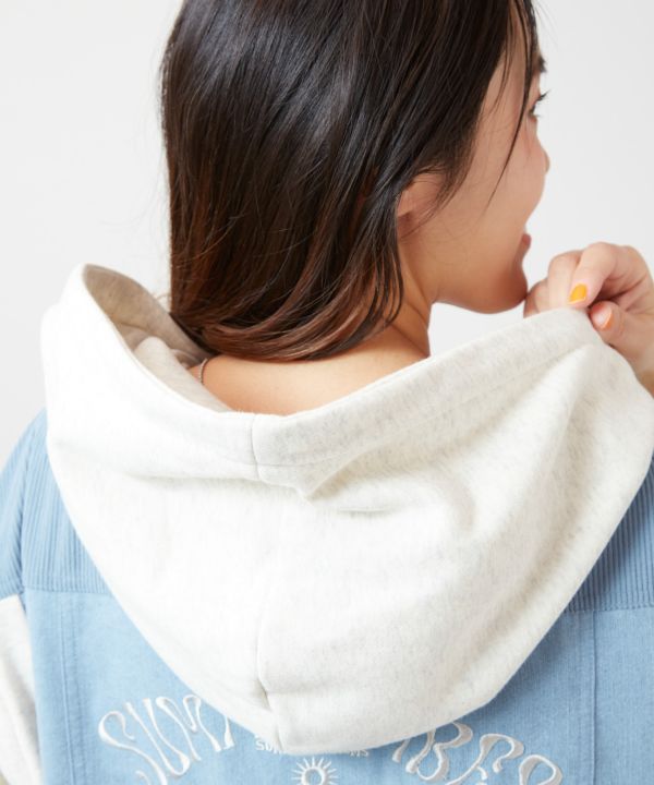 ストレッチデニムをベースに、裏毛とコーデュロイを切り替えたデザインが印象的なアウター。丈夫ながらもやわらかく、肌なじみの良い質感が魅力です。使いこむほどに風合いが増し、自分だけの味わいを楽しめます。