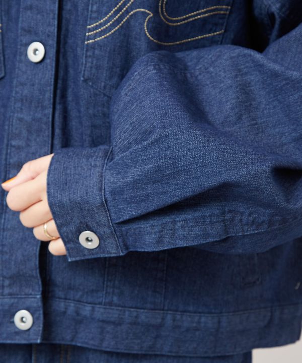 ストレッチデニムを使用したデニムジャケット。しっかりとした生地感ながらも柔らかく、着るほどに身体に馴染む快適な着心地。使いこむことで生まれるデニム特有の風合いを楽しめる一枚です。