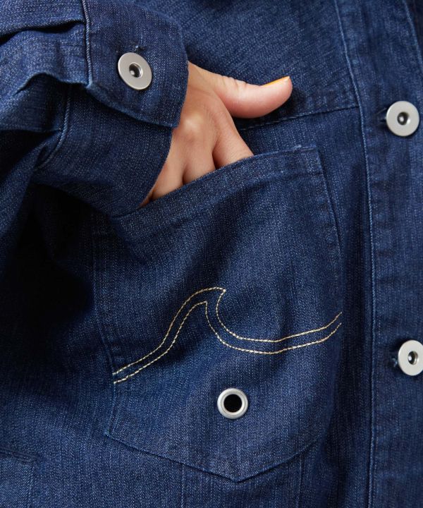 ストレッチデニムを使用したデニムジャケット。しっかりとした生地感ながらも柔らかく、着るほどに身体に馴染む快適な着心地。使いこむことで生まれるデニム特有の風合いを楽しめる一枚です。