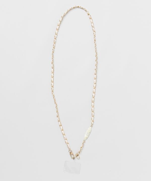 オーバル型のハワイアンジュエリーデザインが美しいスマホストラップ。肩掛けできる仕様で外出時にも便利。華やかで上品な輝きが、リゾートスタイルにもぴったりです。