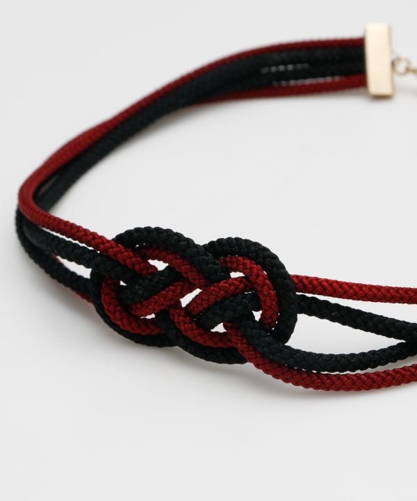 伝統の淡路結びを取り入れた組み紐チョーカー。しなやかな組みひもの質感が美しく、首元に上品な存在感を添えます。モダンな色合わせで洋装にも馴染み、普段使いから特別な日まで活躍するアクセサリーです。