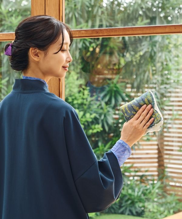 パンジー・ポピー・ミモザの華やかな花々を和モダンに描いた綿ふきん。目を引く色合いとデザインで、毎日のキッチンまわりを明るく彩ります。贈り物にもおすすめです。