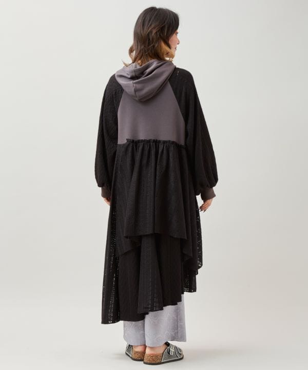 異素材使いが印象的なパーカーワンピース。大胆な切替で、レースなどを贅沢に使用したデザイン。古着ライクな雰囲気で、カジュアルなコーデにもおすすめ。
