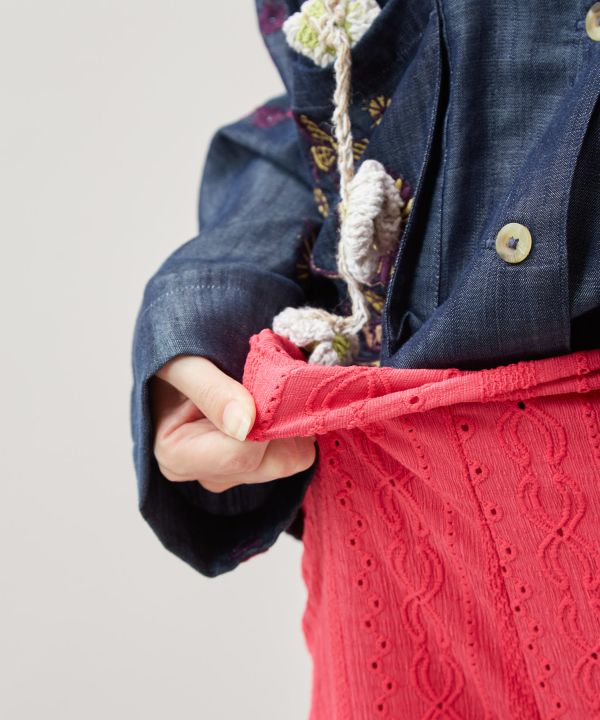 ブーツカットのシルエットとレース風素材が魅力のインナーパンツ。伸縮性があり履き心地も抜群。ワンピースやスカートとのレイヤードに最適。
