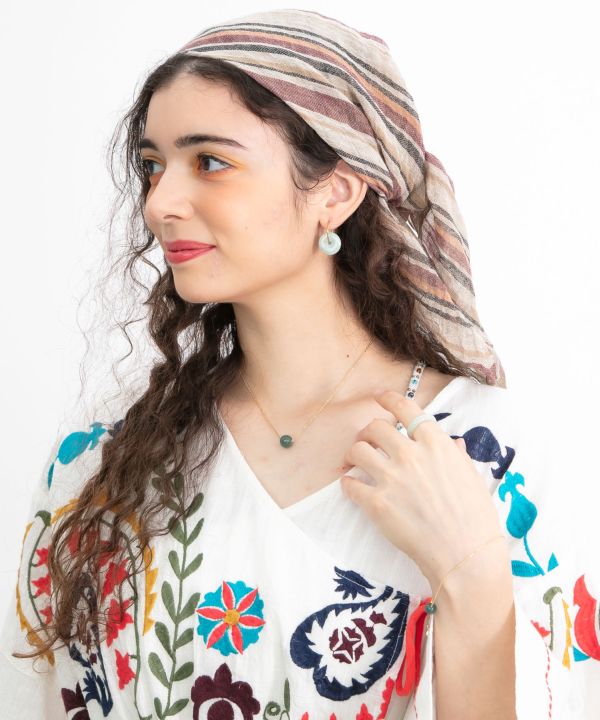 翡翠は古来「魂を癒す石」として、シルクロードを旅する人々に護符として携えられてきました。中央に配した翡翠が静かな存在感を放つ、石の意味を引き立てるシンプルな祈りのブレスレット。