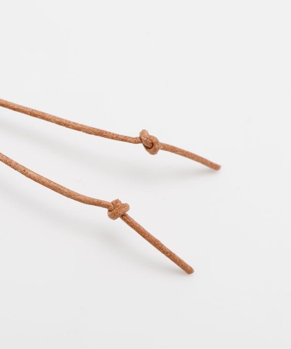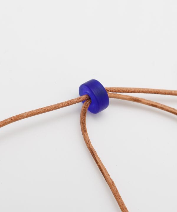翡翠は古来「魂を癒す石」として、シルクロードを旅する人々に護符として携えられてきました。合皮と組み合わせたロングネックレスは、ナチュラルかつモダンな祈りのスタイルに。