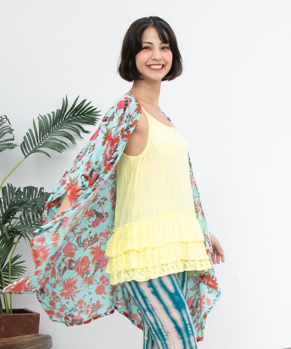 ラメ入りドビー生地とレースを組み合わせたキャミソール。インナーとして裾レースを見せるレイヤードスタイルにぴったりの万能アイテム。