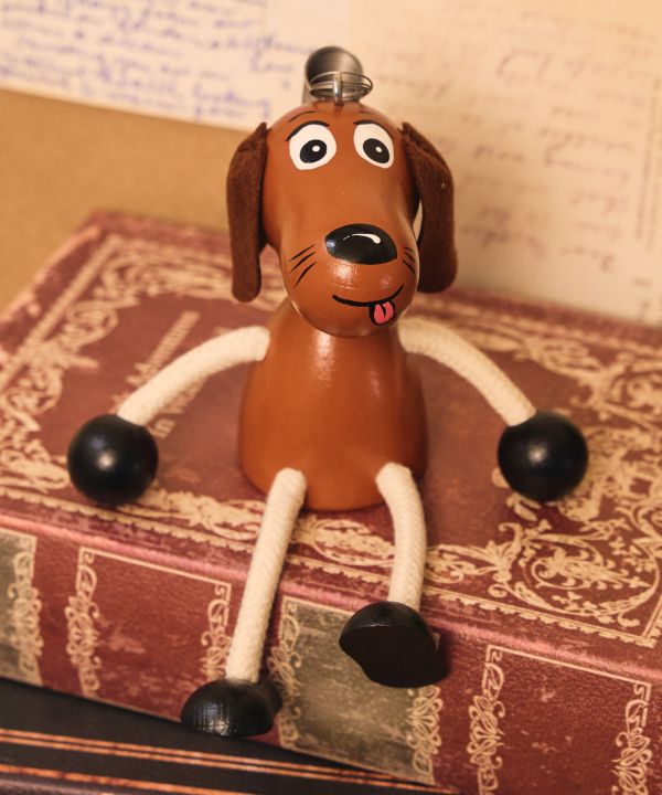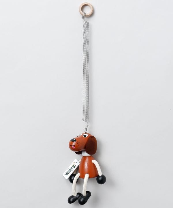 親しみやすい表情が魅力のドッグスプリングドール。ユーモラスな動きと木のぬくもりが調和し、壁や窓辺に吊るすだけで温かみのある空間に仕上がります。