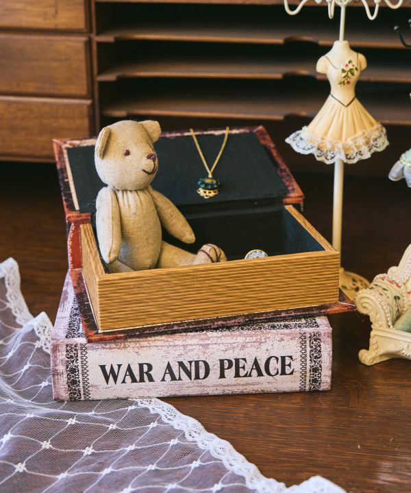 アンティーク洋書を思わせるブックオーナメントは、重厚感ある佇まいが魅力。クラシカルな装飾で本棚やデスク周りを上質に演出するインテリアアイテム。