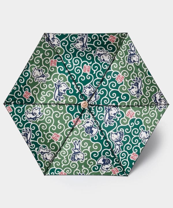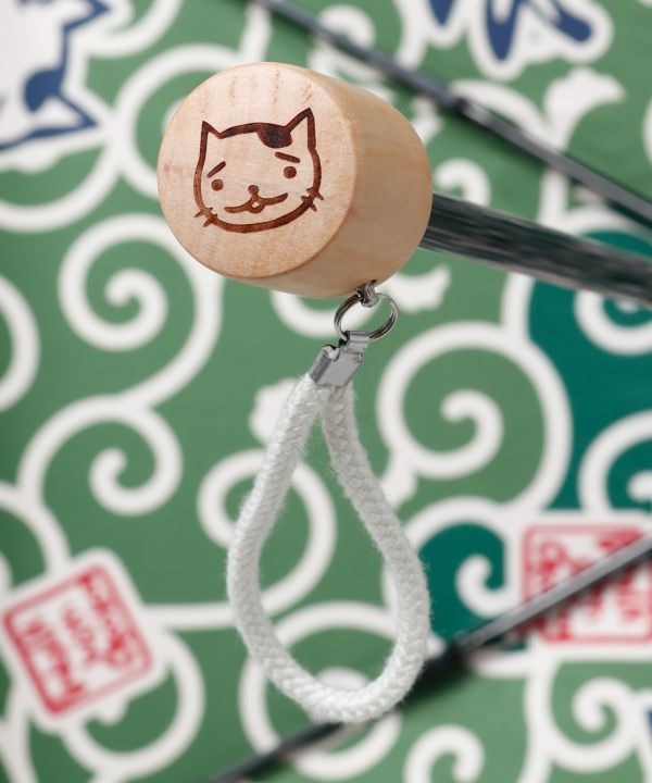 《遮光率90%以上》おかかの折り畳み日傘が初登場!晴雨兼用で使えて、カバー付き。木製の持ち手部分には、おかかの顔が彫られており、細部までこだわりが。様々な表情・仕草のおかかが散りばめられ、晴れの日も雨の日も歩くのが楽しくなりそう♪