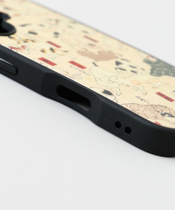 江戸時代の浮世絵師・歌川国芳による「猫飼好五十三疋(みょうかいこうごじゅうさんびき)」をモチーフにしたスマートフォンケースです。さまざまな姿の猫たちが生き生きと描かれ、見ているだけで心が和むデザイン。古典の風情と遊び心をあわせ持った一枚です。ケースの裏面には、神社で祈祷を受けたお守りシール付き。日常に寄り添いながら、心を守る御守りのようなケースです。