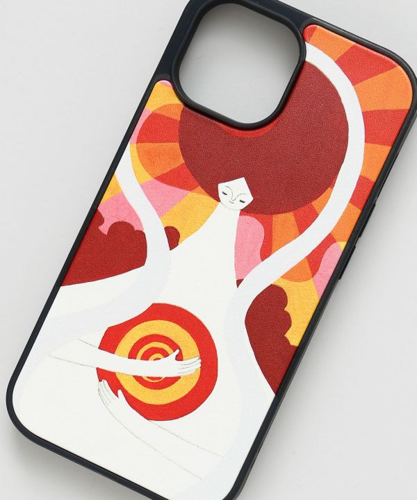 太陽の神・天照大神をモチーフにデザインしたスマートフォンケースです。裏面には神社で祈祷を受けたお守りシール付き。日常で使うスマートフォンを、心を整える御守りのようにお持ちいただけます。