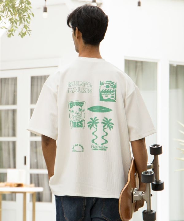 表面感のある素材が涼しげな印象のメンズTシャツ。さらっとした肌触りで着心地も快適です。便利なストラップポーチ付きで、アクティブシーンにも活躍します。