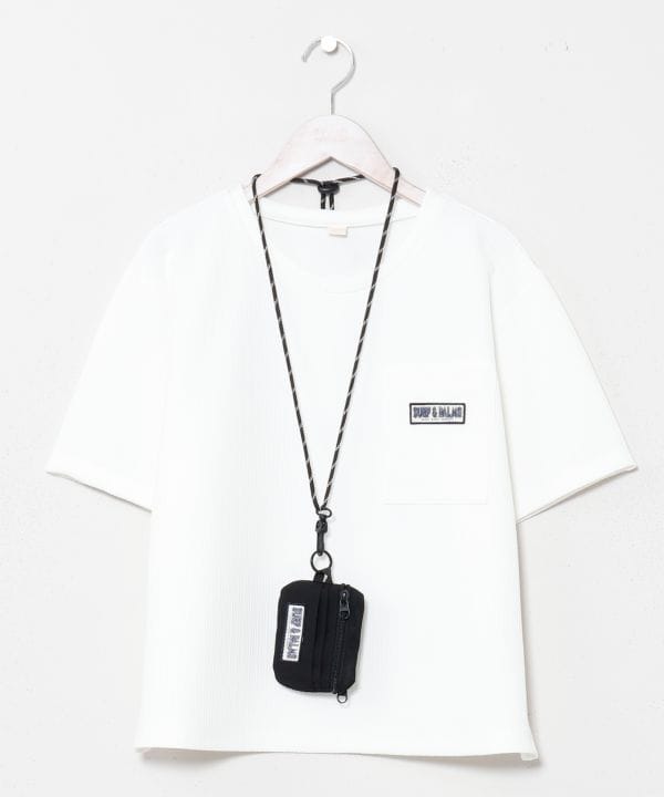 表面感のある素材が涼しげな印象のTシャツ。さらっとした肌触りで快適に着用でき、付属のストラップポーチがアクセントに。カジュアルにもリゾートにも映えるアイテムです。