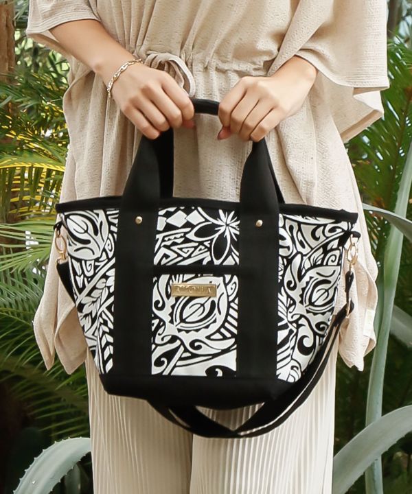 取り外し可能なショルダーベルト付き2WAYミニトート。中には仕切りがあり使いやすい設計。ナチュラルな素材感がハワイのリラックスムードを演出し、カジュアルにもおでかけにも活躍するデザイン。