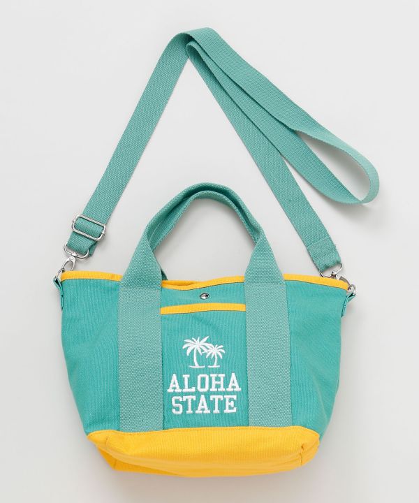 ショルダーベルト付き2WAYミニトート。ハワイの自然を思わせる明るいカラーと軽やかな素材感が魅力。コンパクトながら収納力があり、デイリーにも旅行にも使える万能バッグ。