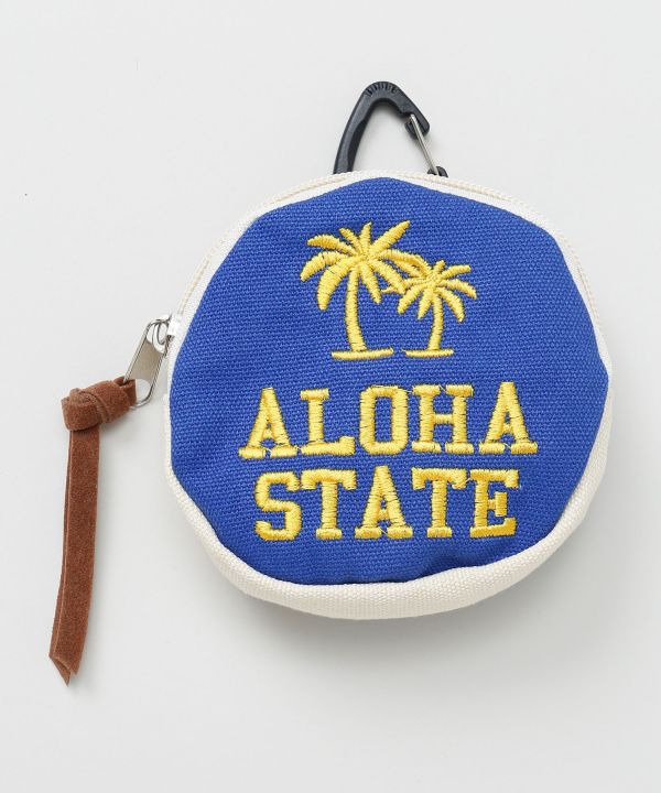 カラビナ付きでバッグやベルトループに取り付け可能なラウンドポーチ。鍵やリップなど小物の収納に便利。ハワイの陽気な色使いと遊び心のあるデザインがポイント。