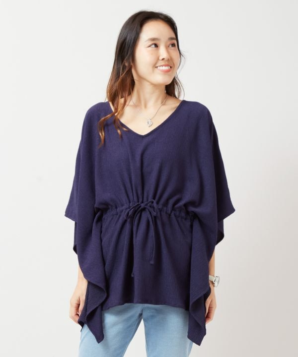 皺になりにくいストレッチ性のある柔らかなカットソー素材のトップス。ウエスト紐でシルエットを調整でき、さまざまな体形にフィット。快適な着心地でデイリーにも上品なコーデにも活躍します。