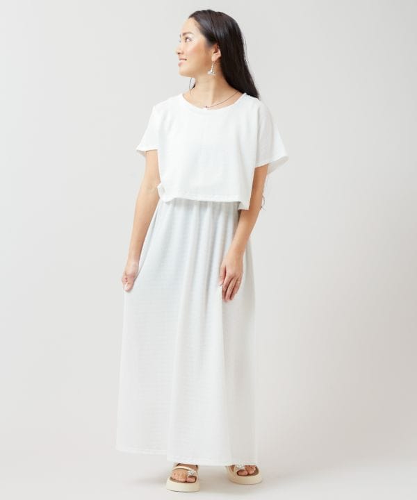 皺になりにくくストレッチ性のある柔らかなカットソー素材を使用したセットアイテム。トップスとワンピースを別々にも着用でき、着こなしの幅が広がります。リラックス感のある着心地が魅力。