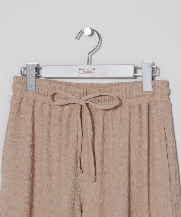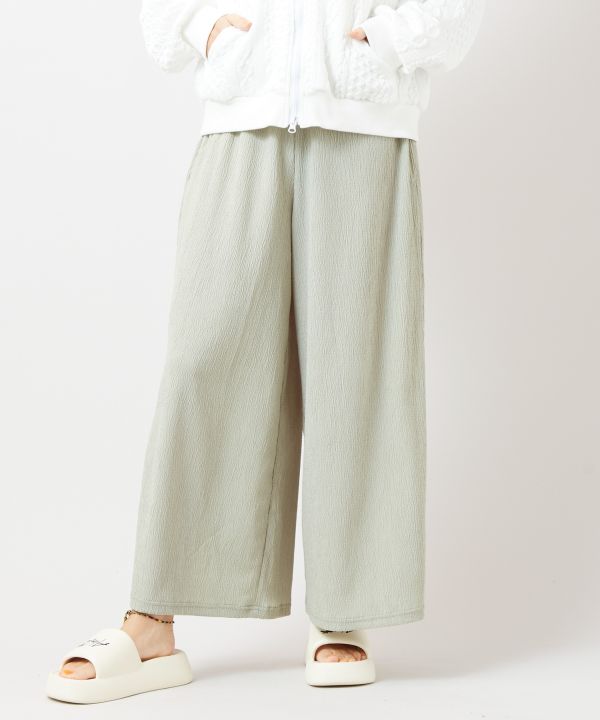 皺になりにくくストレッチ性のある柔らかなカットソー生地を使用したフレアパンツ。肌なじみが良く、ウエストゴム仕様で快適な履き心地。リラックス感のあるシルエットが魅力です。