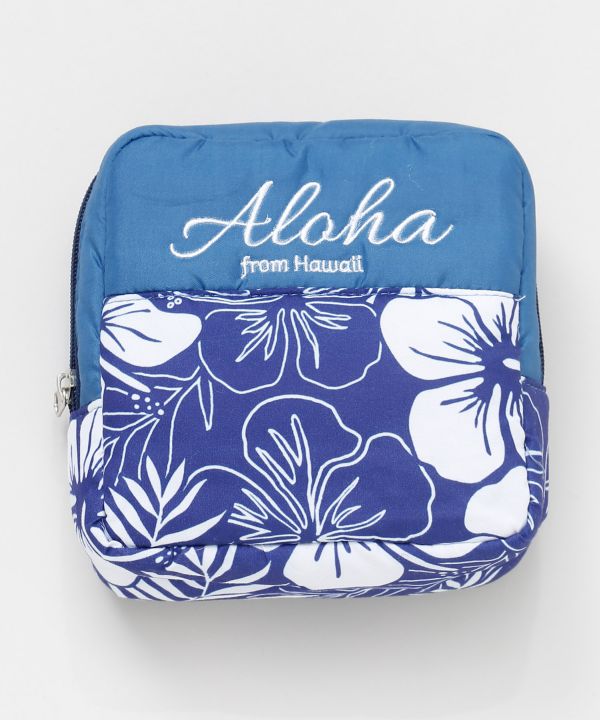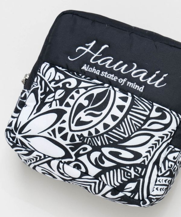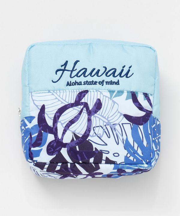 中綿入りでクッション性のあるポーチ。コスメや小物をまとめるのに便利な大きめサイズで、旅行にもおすすめ。柔らかな手触りと軽さが魅力の、ハワイらしいリラックス感漂うデザイン。