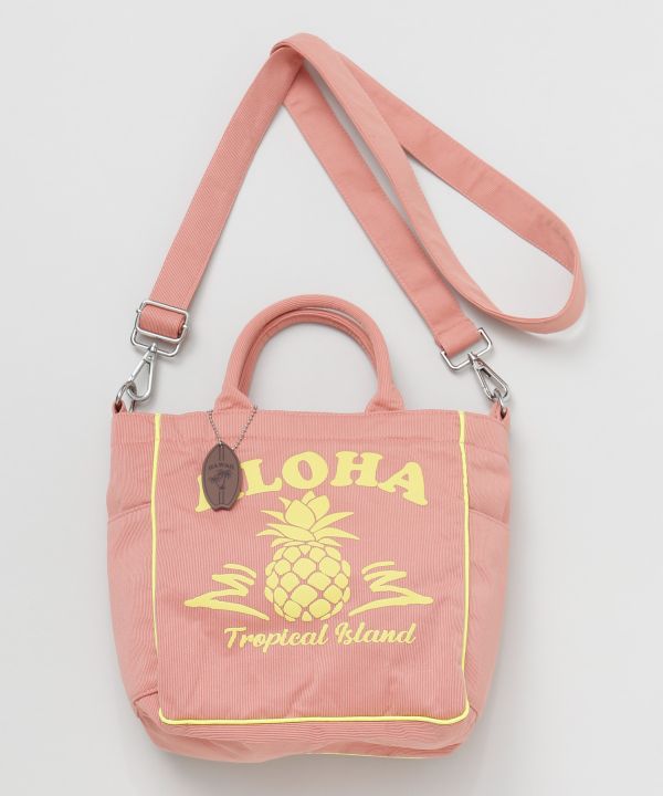 取り外し可能なショルダーベルト付きの2WAYミニトート。チャームが揺れる可愛らしいデザインで、トートにもショルダーにもアレンジ可能。ハワイの自然を思わせる柔らかな色使いが魅力です。