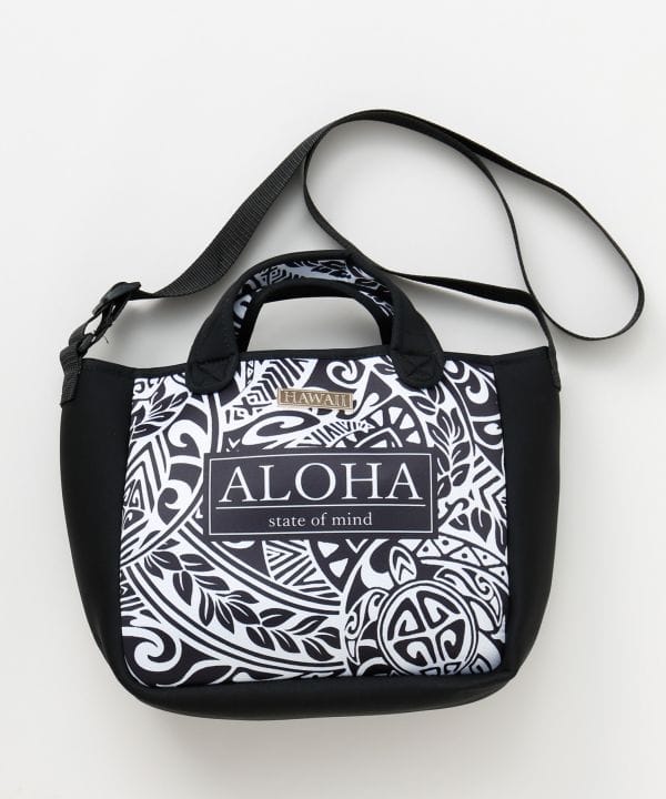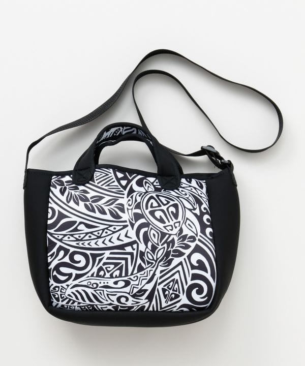 ウェットスーツ素材にハワイアンプリントを施したショルダーバッグ。軽くてクッション性があり、水に強いのでマリンアクティビティやジムバッグにも最適。スタイリッシュで実用性抜群のデザイン。