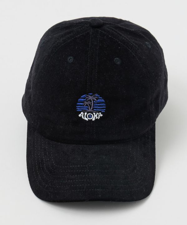 コーデュロイ素材にALOHAとサンセットの刺しゅうが映えるキャップ。カラフルな配色が目を引き、ハワイの陽気な雰囲気を感じさせます。サイズ調整可能で、季節を問わず使えるカジュアルスタイルにおすすめ。